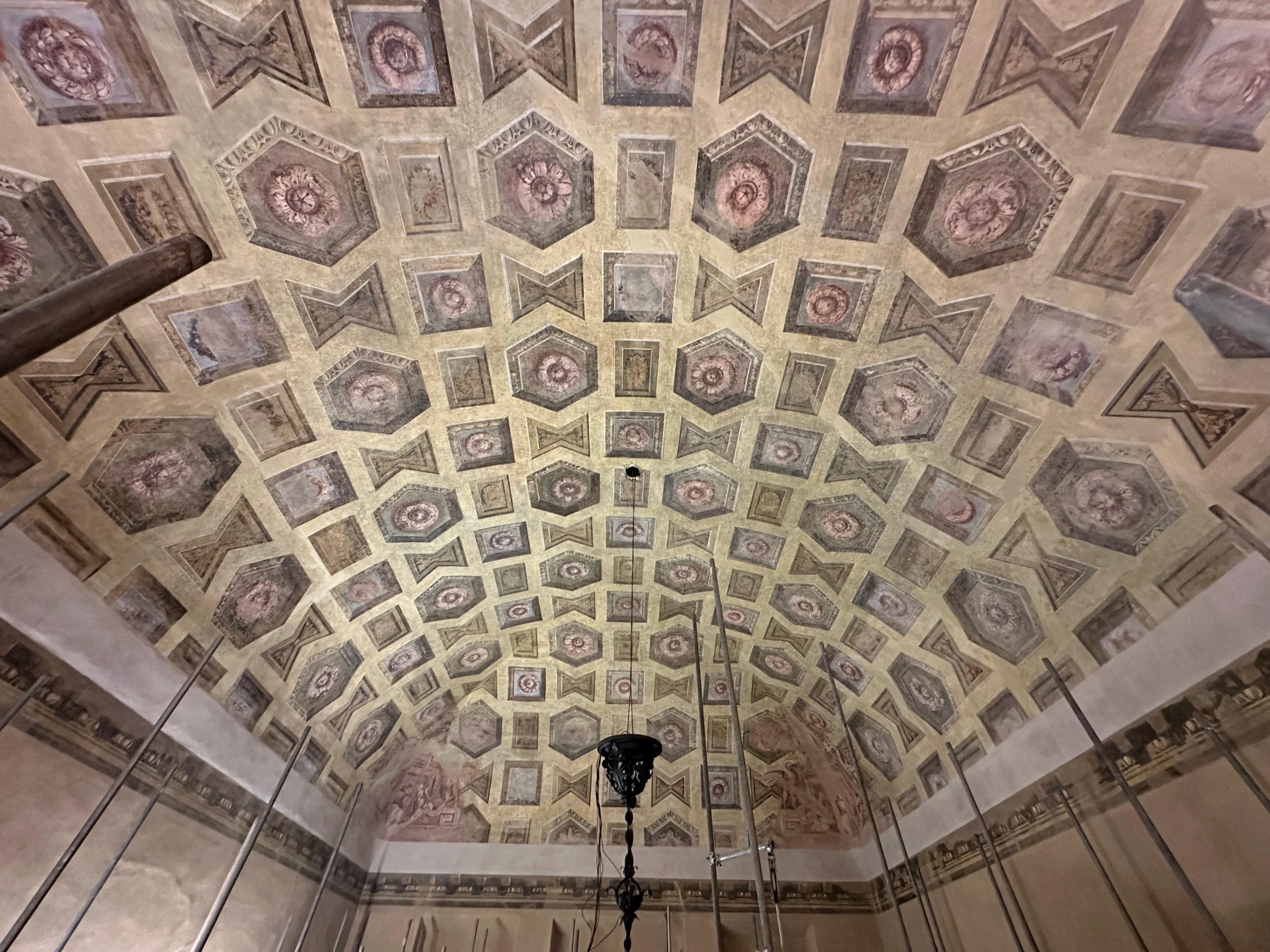 Il cantiere ha svelato alcune interessanti scoperte sul soffitto della Sala, che hanno portato la Fondazione ad avviare una campagna di restauro più importante che si è conclusa nell’estate 2024 realizzata anche con l’importante sostegno della Beretta Industrie s.p.a.